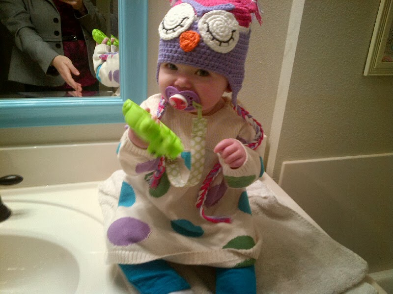 I slammed on my brakes, but couldn't avoid him. There was a horrible crunching sound and I could see stuff flying off the front of my car. I pulled off the side of the road into someone's driveway and immediately went to check on Avery. She didn't seem phased so I called Adam. Apparently I sounded very calm so after he asked if we were okay and had me check out the damage he teased me saying that I was driving too fast. Then I just lost it, hung up on him and started bawling! He called right back to apologize and we decided to go ahead and take Avery to the ER to get her checked out since my neck/shoulders were already sore. After a quick check, the ER doc said everything was fine and I felt much better knowing that my baby was ok. Hopefully this was her first and only ER visit!